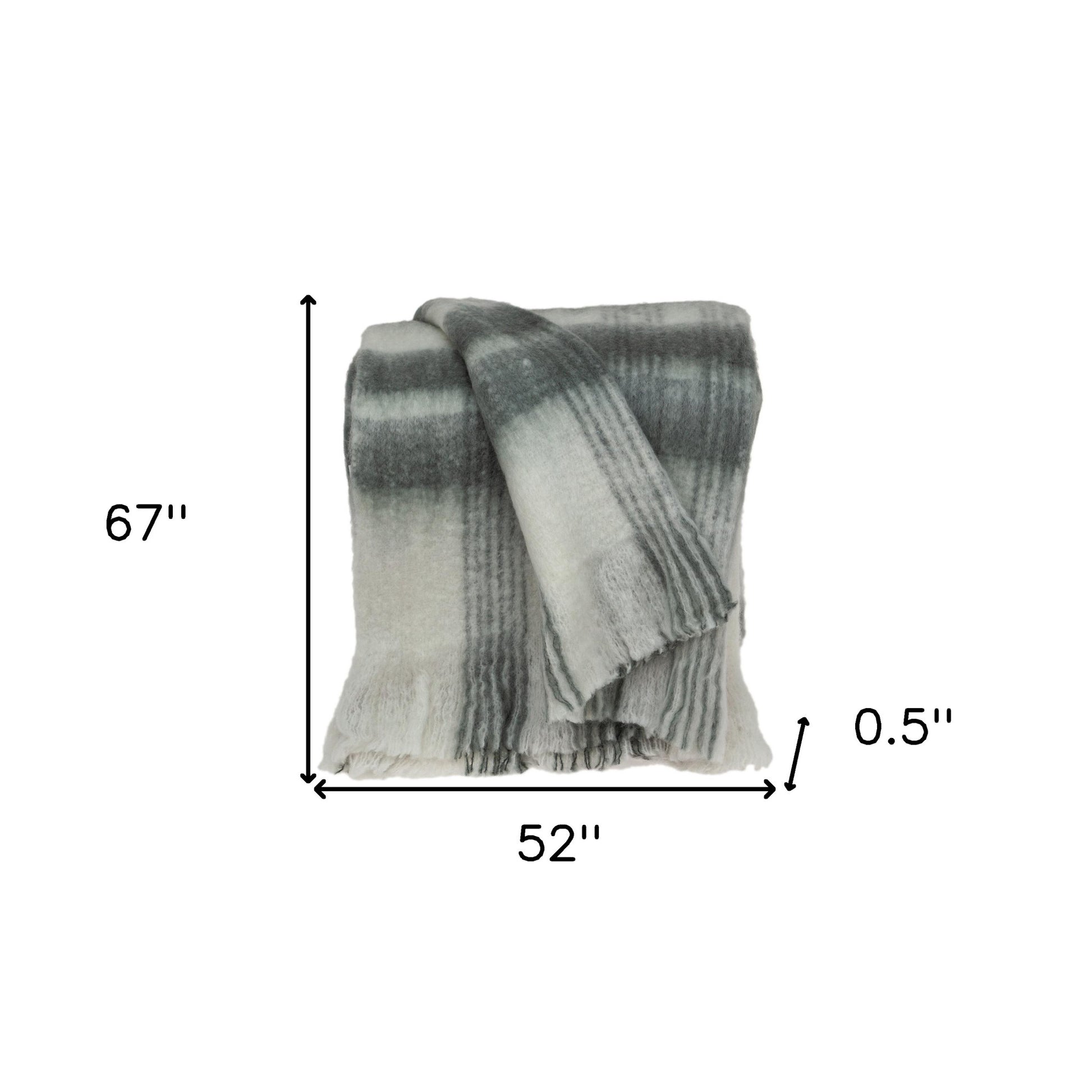 Cuddle up on a cold winter's night with a hot cuppa, your favorite book and the comforting Transitional Gray and White Woven Handloom Throw. Truly a visual delight, this trendy throw has a blurred checkered design combined with a blend of wool, acrylic and nylon to create a luxuriously soft accessory that accentuates your existing living space. Handloomed to perfection, this blended throw makes the perfect accompaniment to your home. 67" x 52" x 0.5"