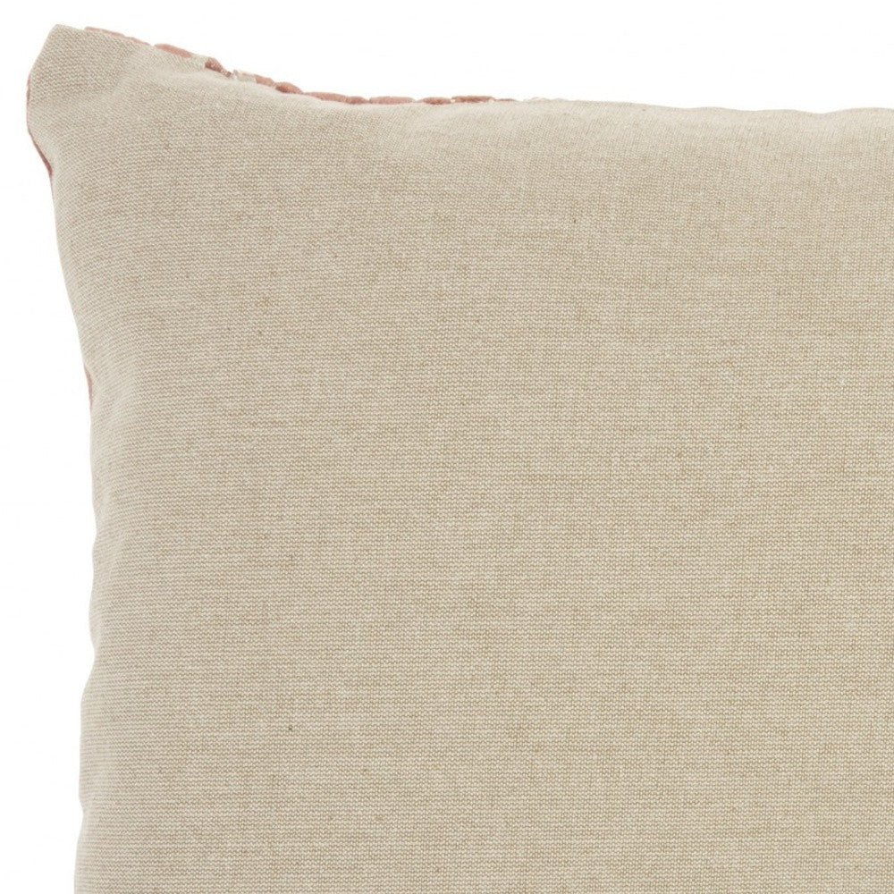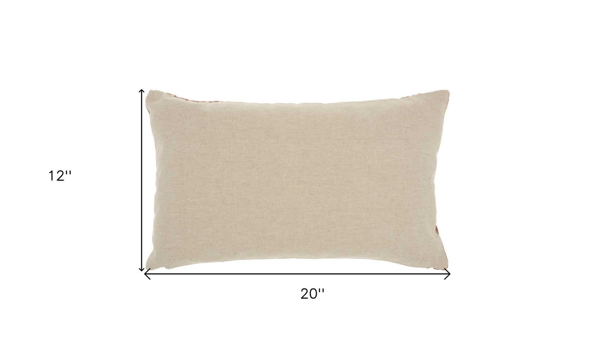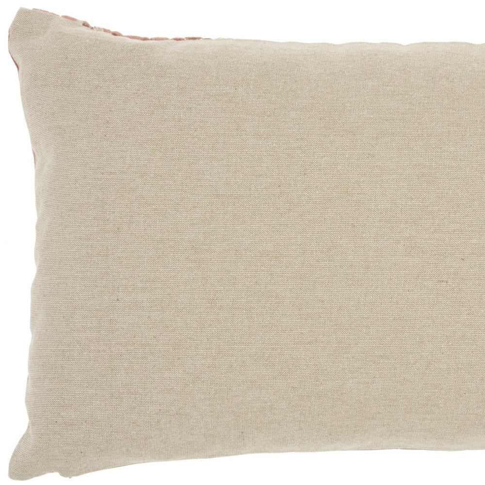 With this Two Tone Striped Lumbar Pillow you can elevate the look of any seating area in your home. This rectangular shaped pillow is covered in a soft velour fabric in a two tone tea pink and beige colorway. This fabric has a striped design on it with alternating embossed and plain stripes. The middle section is in a beige color while the sides have the tea pink color on them. All throughout the front of the cushion is a pattern that resembles the look of bleach spots and adds just the right amount of depth to the overall look. You can use this pillow to add a pop of design to your bed, your couch, or even your favorite chair. 5" H x 12" W x 20" D