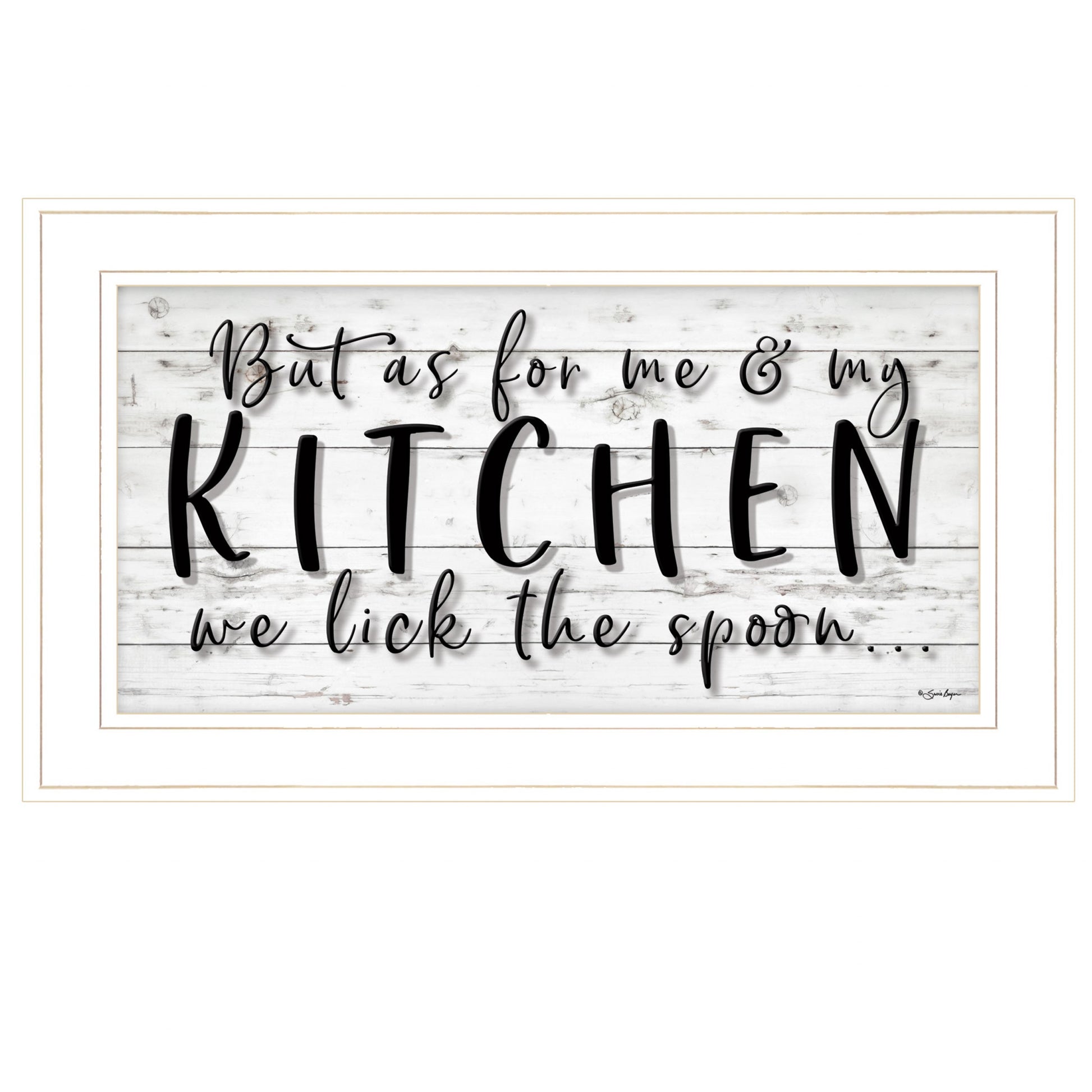 The we lick the spoon 1 white framed print wall art is the perfect decorative accessory for your home. This print is a visual artistic expression that allows you to decorate your space in style. Reproduced for you on paper, this hanging decorative accent will be a trendy and fashionable way to dress your walls. Adding this hanging wall art to your space to make your room feel more finished and attractive. Utilize this opportunity to create a focal point in the room with this fabulous wall decor option. 15 inches H x 27 inches W x 1 inches D
