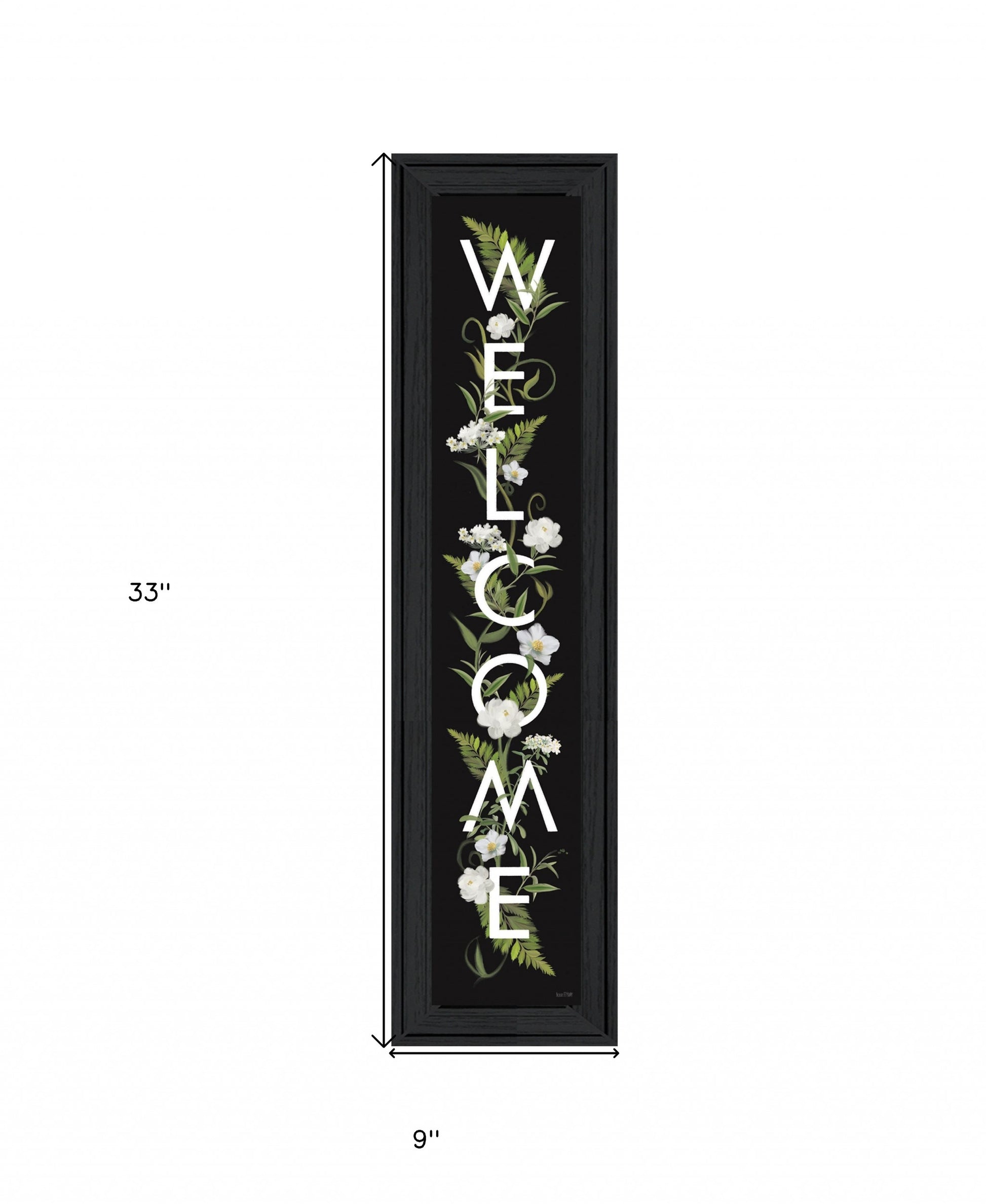 Add an air of fashion to your room and rejuvenate the space with this welcome sign I 2 black framed print wall art. This print is a visual artistic expression that allows you to decorate your space in style. Reproduced for you on wood, this hanging decorative accent will be a trendy and fashionable way to dress your walls in a rustic and modern farmhouse vibe. Adding this hanging wall art to your space to make your room feel more finished and attractive. Instantly liven up your space with this art that brings color and dimension to your walls. 33 inches H x 9 inches W x 1 inches D