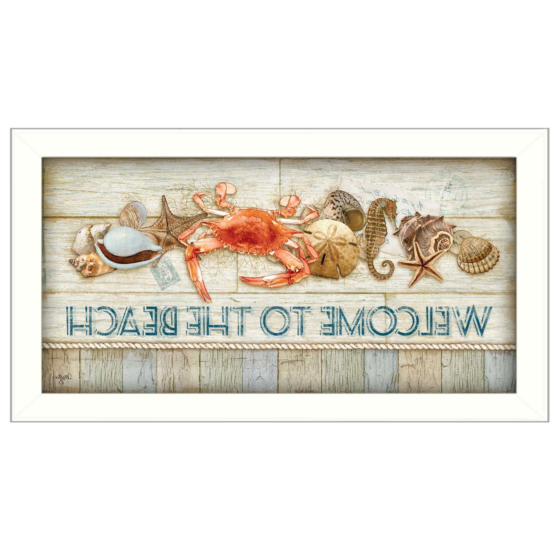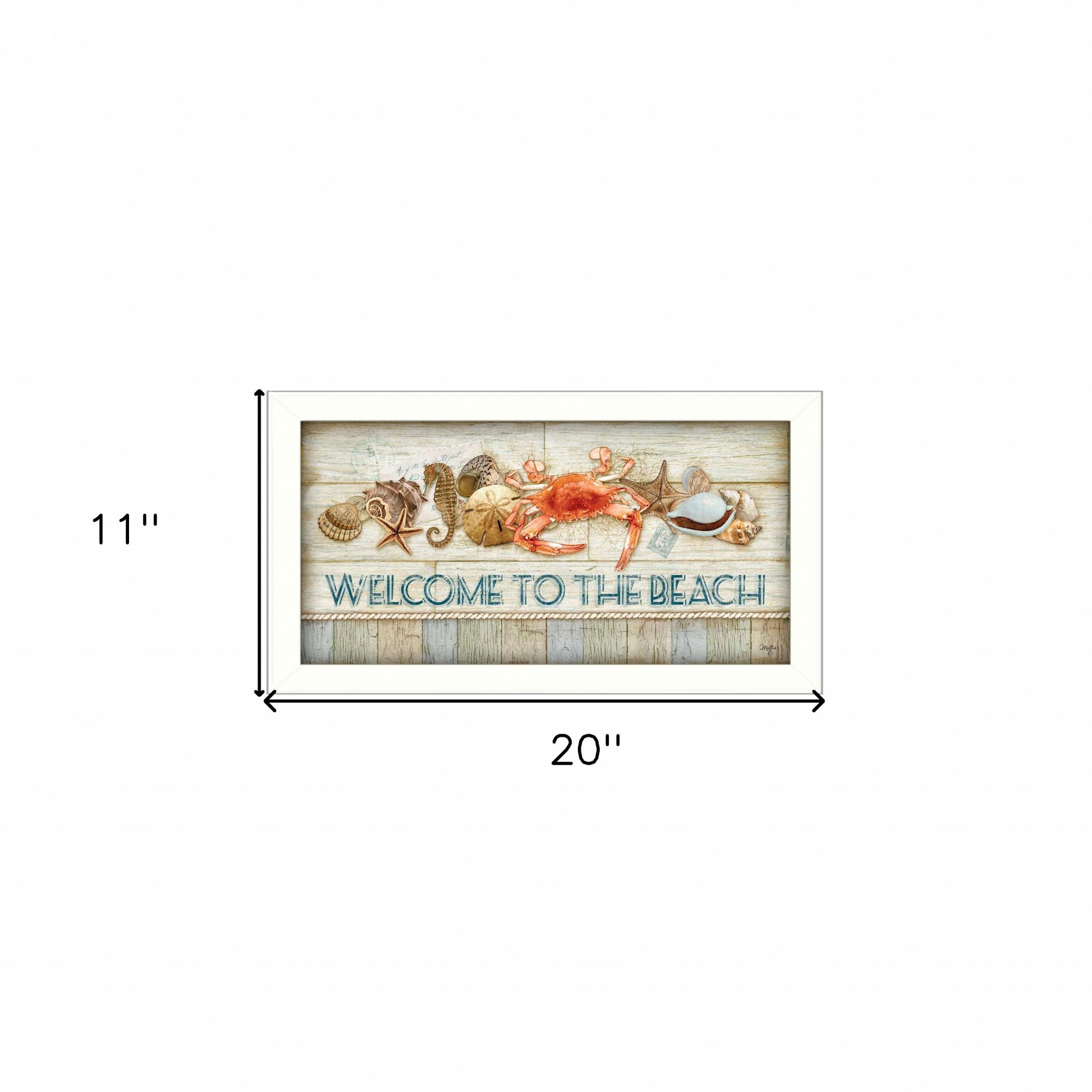 The welcome to the beach white framed print wall art is the perfect decorative accessory for your home. This print is a visual artistic expression that allows you to decorate your space in style. Reproduced for you on paper, this hanging decorative accent will be a trendy and fashionable way to dress your walls. Adding this hanging wall art to your space to make your room feel more finished and attractive. Utilize this opportunity to create a focal point in the room with this fabulous wall decor option. 20 inches H x 11 inches W x 1 inches D