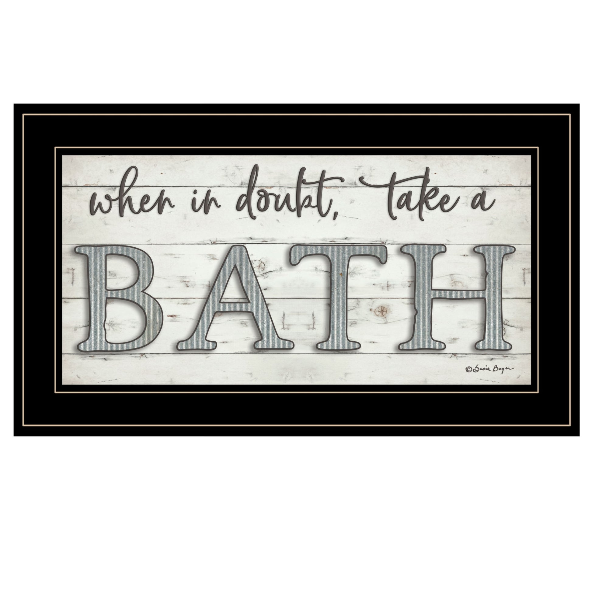 This when in doubt take a bath 3 black framed print bathroom wall art will add a beautiful decorative accent to your decor. This print is a visual artistic expression that allows you to decorate your space in style. Reproduced for you on paper, this hanging decorative accent will be a trendy and fashionable way to dress your walls. Adding this hanging wall art to your space to make your room feel more finished and attractive. Utilize this opportunity to create a focal point in the room with this fabulous wall decor option. 12 inches H x 21 inches W x 1 inches D