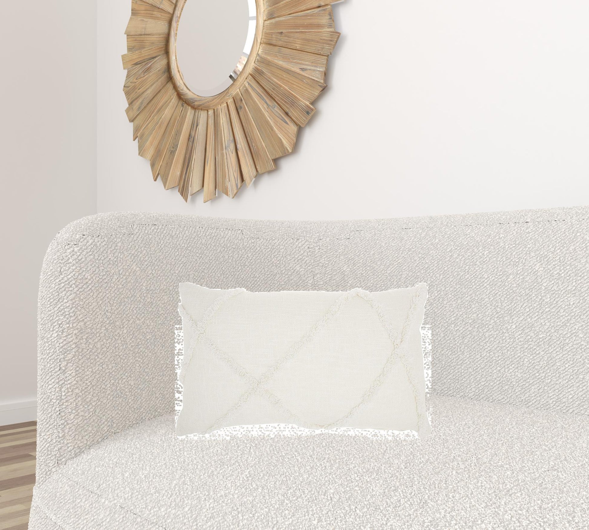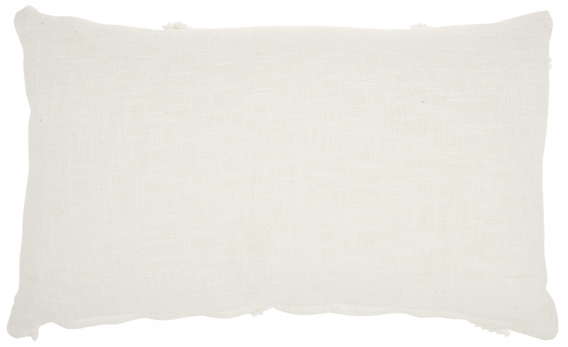 With this White Shaggy Detail Lumbar Pillow you can add the perfect mix of design and comfort to your home. This pillow has a rectangular shape and is covered in a textured white colored fabric. On top of this fabric there are shaggy thread lines in a geometric pattern that are in the same white color. The same colored details add a touch of depth and dimension to the overall look of this pillow and will elevate any seating space in your home. You can use this pillow to style up your bed, your couch, or any other seating area in your home and it will work with any existing colors or decor styles you may already have. 5" H x 14" W x 24" D