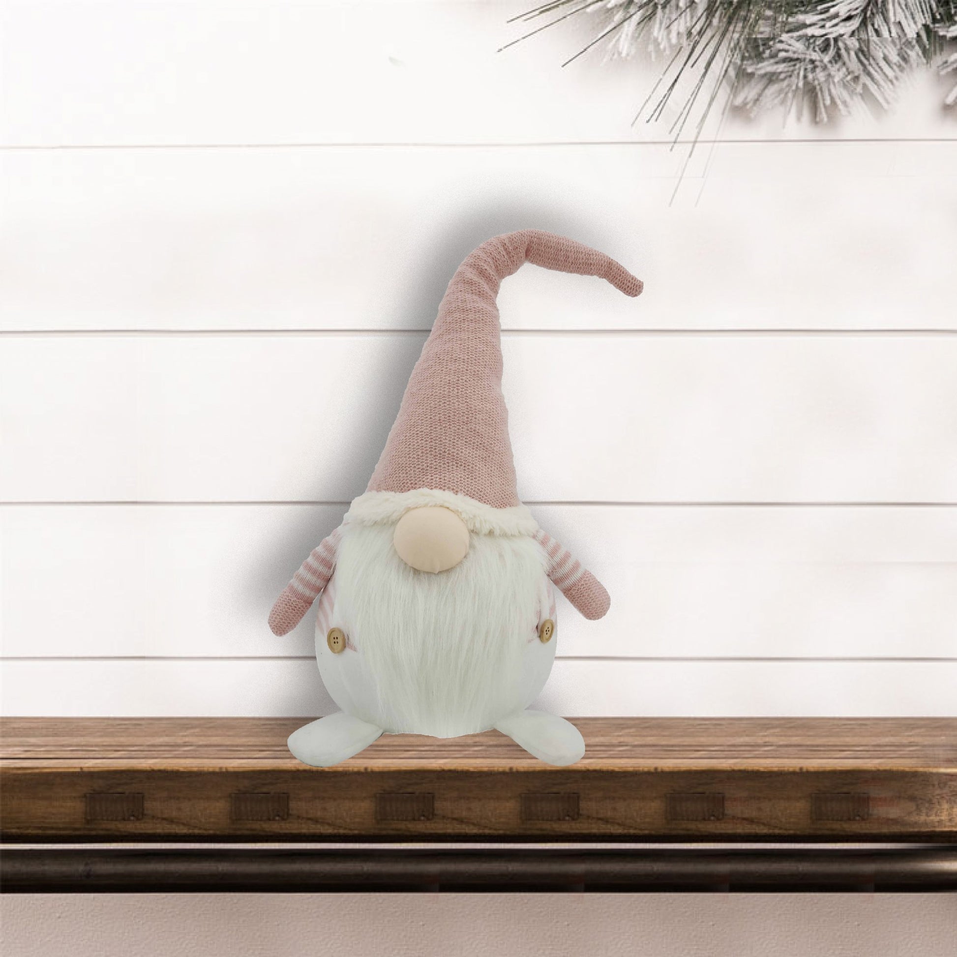 This baby pink hat fabric gnome needs a home this Christmas. His shoes, hat, and mittens are soft and cuddly, for anyone to hug or hold. He has a knitted blush pink hat and striped pink and white arms. He also has cute tan buttons on the side of the white rounded bellow shape. This gnome and big and cuddly and is perfect for Christmas or Valentines Day or a bedroom. You can even keep this gnome out all year round! 29.25" x 10.5" x 14"