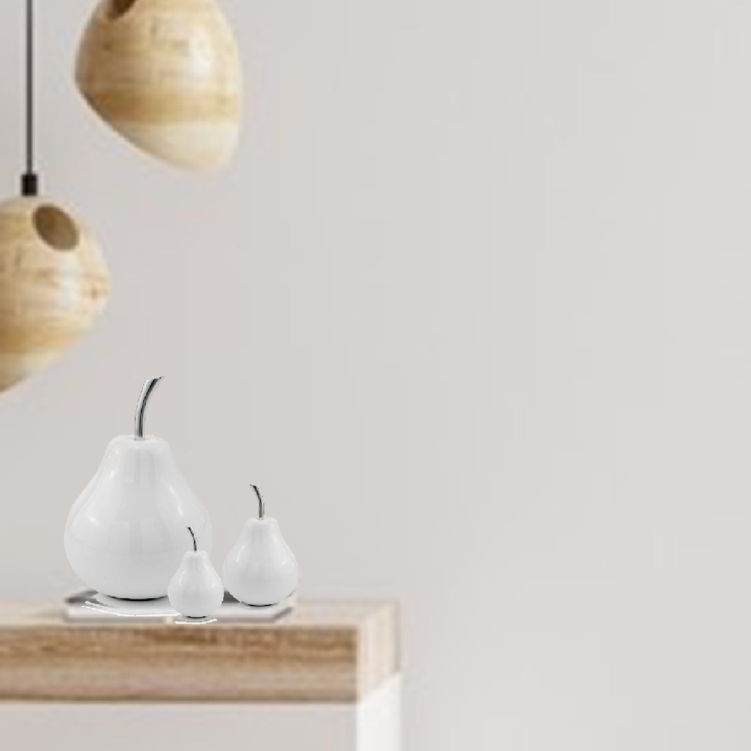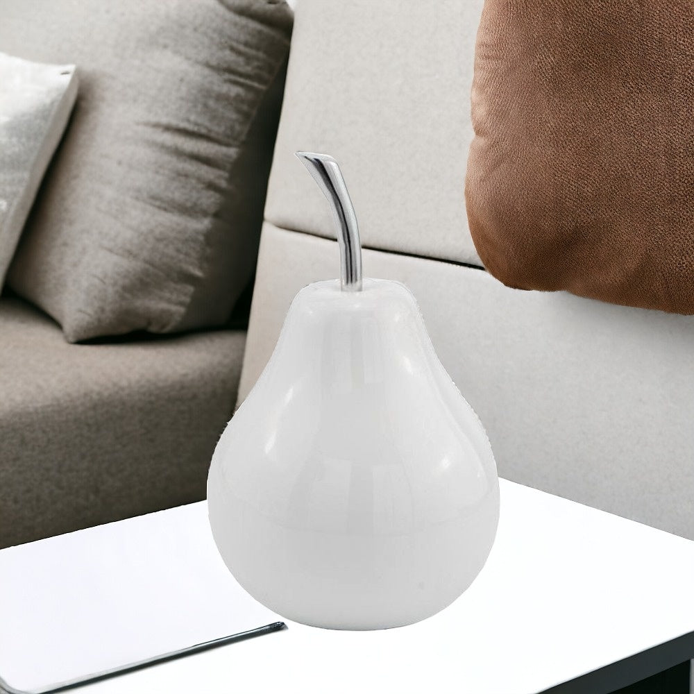 The perfect accent decor for any contemporary living space, Small White Pear is both classic and trendy. Made of aluminum then coated in White Enamel, this modern and bright piece can be arranged on a bookshelf, corralled on an accent tray, or displayed in the kitchen.