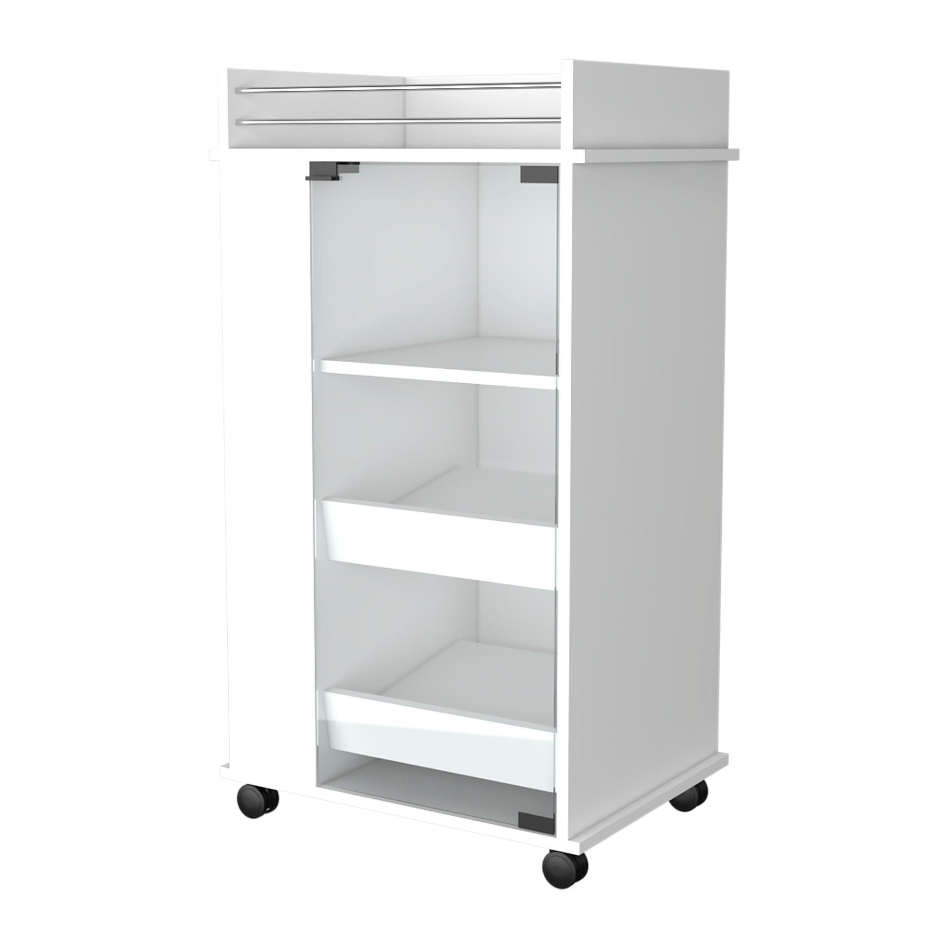 White Rolling Bar Cart With Wine Storage