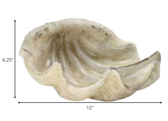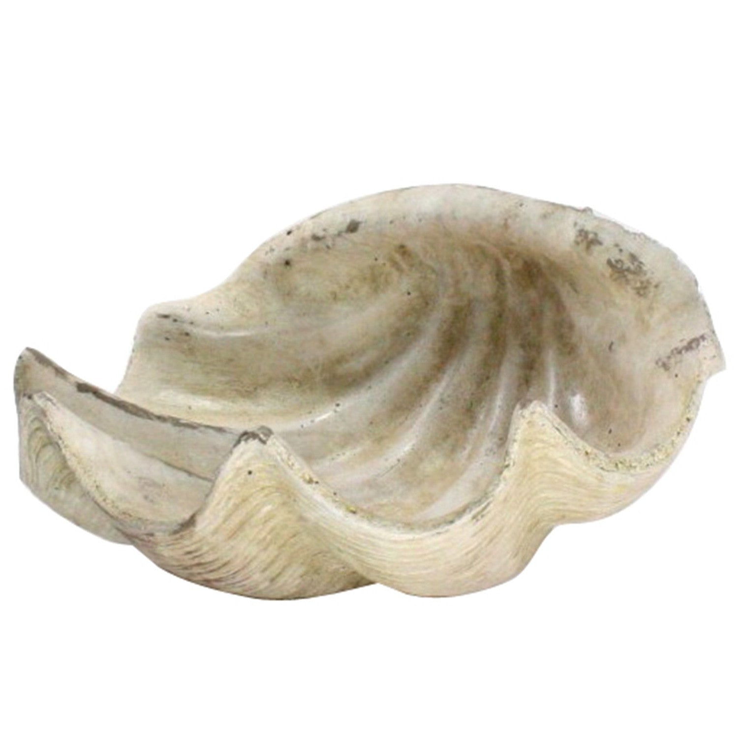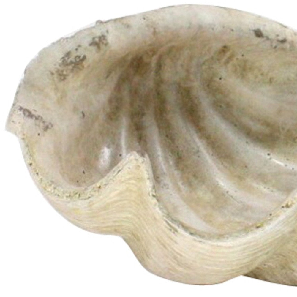 Bring in the perfect touch of coastal decor to your home with this White Sea Shell Sculpture. This piece is made from cast cement and has a distressed off-white finish on it. The shape of this piece mimics an open sea shell with details on the inside and outside of the shape. This decor piece is very unique and will help you bring in the summery vibes to the decor in your home. Use it in whichever room you please and enjoy the serenity that this decor piece radiates. 6.25" H x 9" W x 12" D