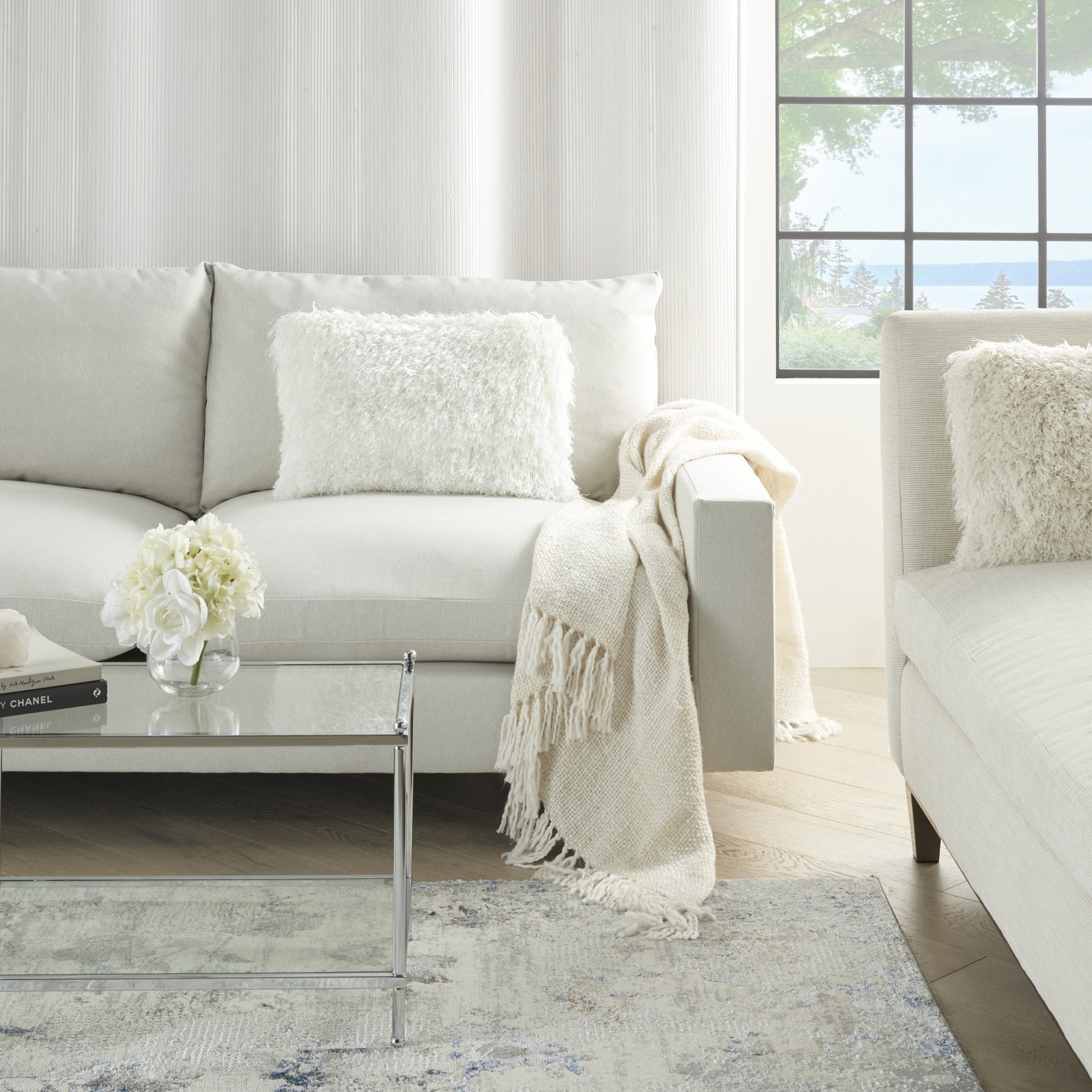White Super Shaggy Throw Pillow