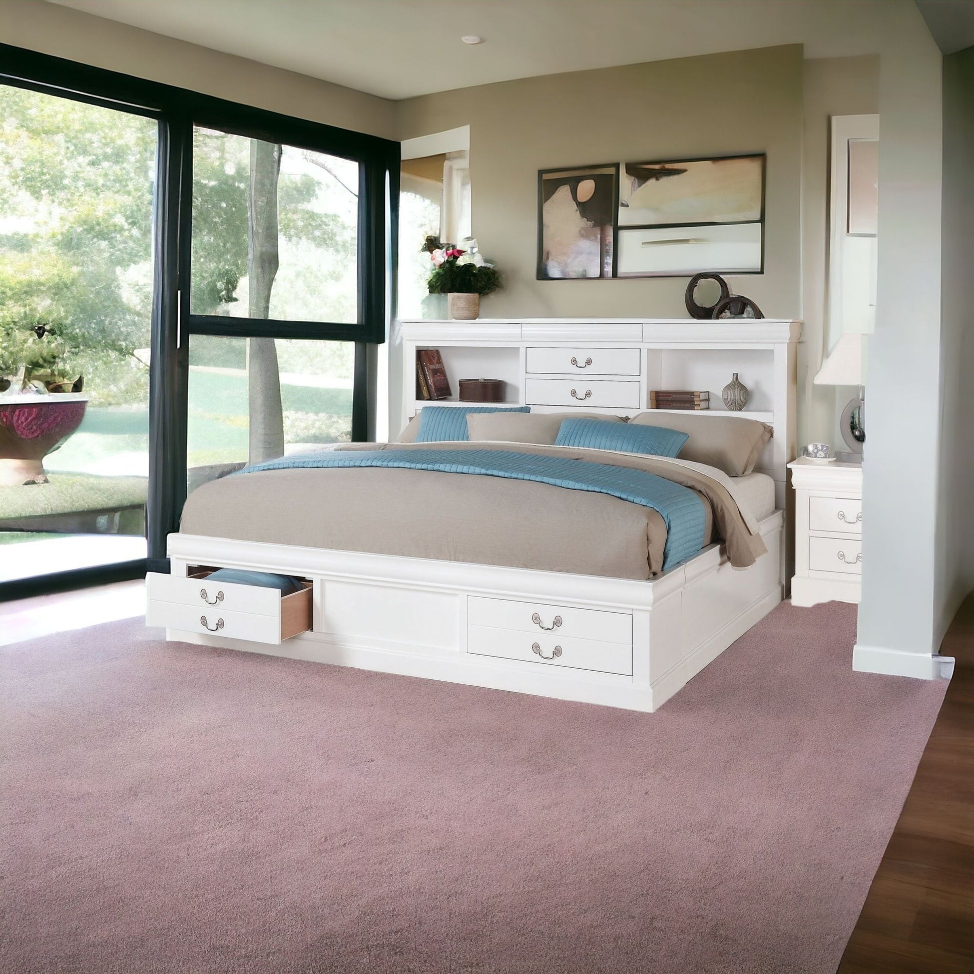This storage bedroom collection features storage bed, headboard with hidden drawers, carefully crafted with selected wood and veneers and complemented by brushed nickel hardware. This will make the perfect companion for your favorite bedroom style, available in different colors to choose from cherry, white, black and antique gray.