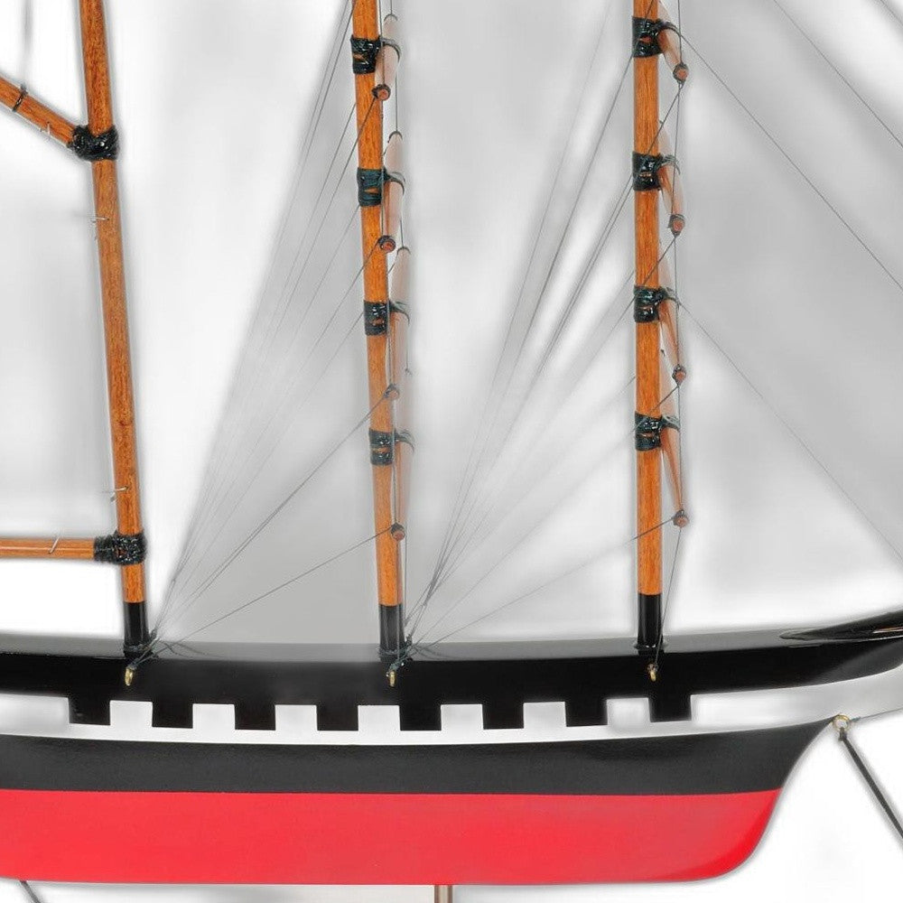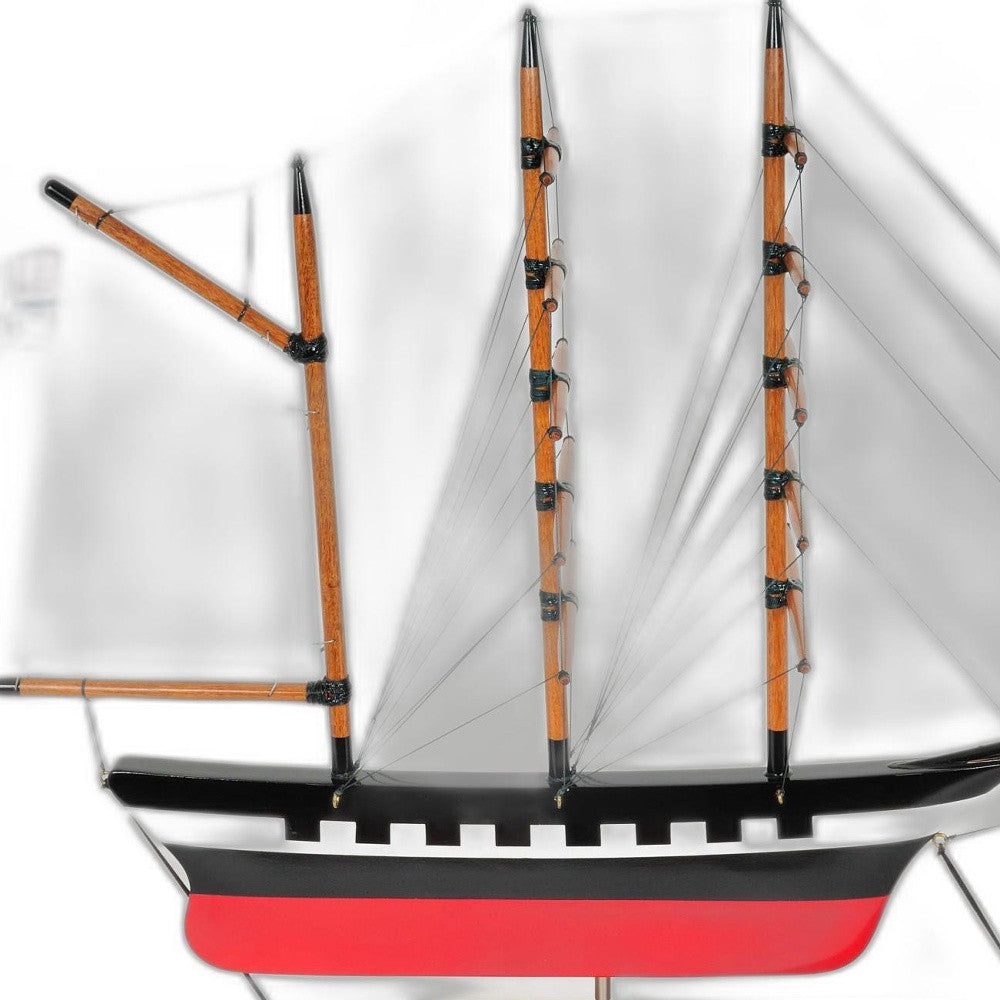 A weather vane is an instrument for showing the direction of the wind. They are typically used as an architectural ornament to the highest point of a building. This wind pointer was very well built from solid wood and painted in red, black and white. The masts are stable enough to withstand strong wind. Come with display wooden stand and rooftop metal bracket.