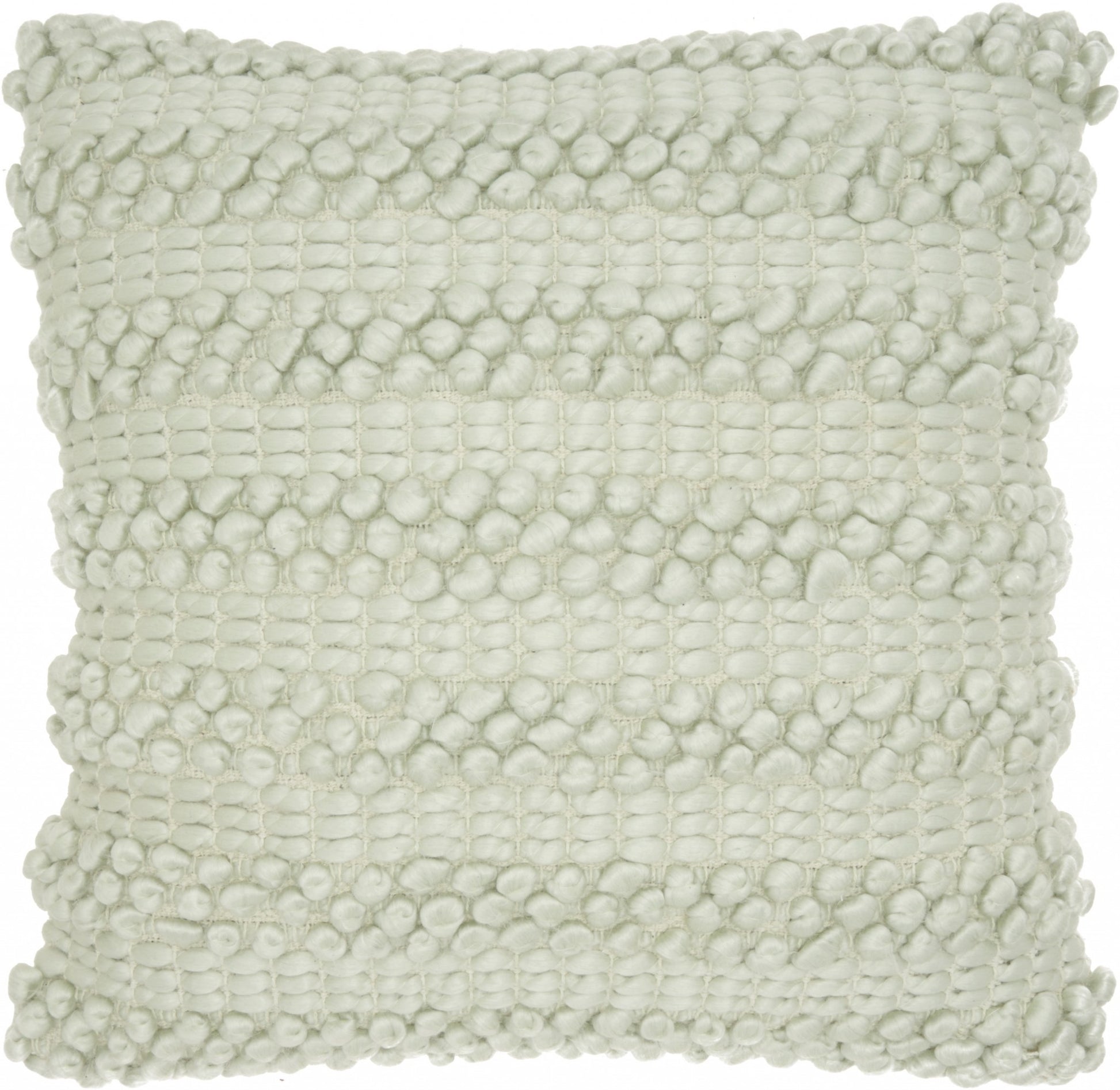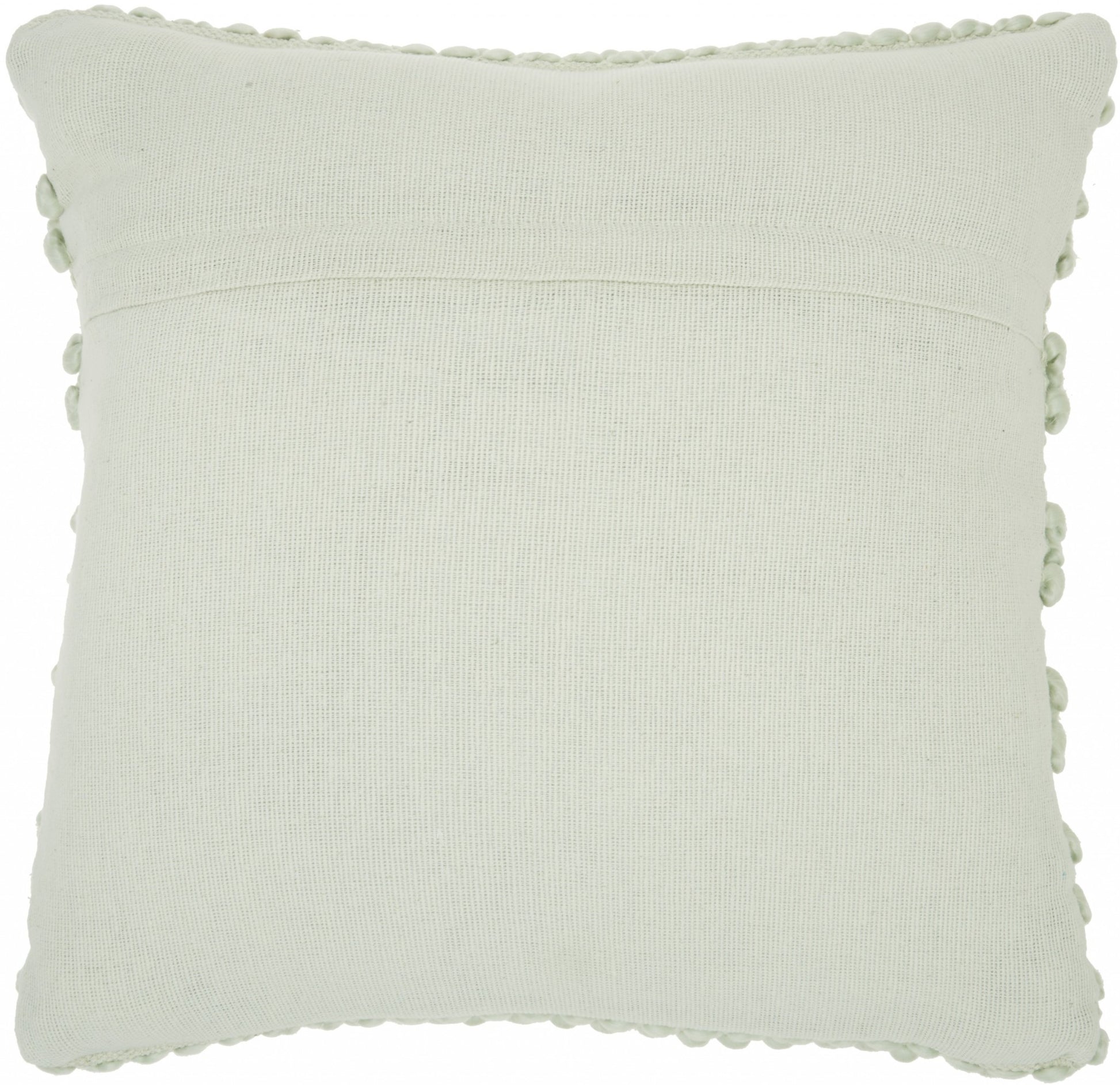 Add a touch of unique design and comfort to any seating space in your home with this XL Mint Green Pom-Pom Detailed Throw Pillow. This pillow has a large square shape with a hidden zip closure at the back for a seamless look. The cover is covered in a mint green colored fabric which has a striped design on top of it. There are two designs in the stripes with one stripe with an embroidered pattern and one stripe with a textured small pop-pom pattern. These stripes alternate and give a very textured feel to the pillow. You can use this pillow anywhere in your home and it will work with any existing colors or decor style you already have, You can use this pillow to elevate the look of your bed, your couch, or your favorite chair. 5" H x 20" W x 20" D