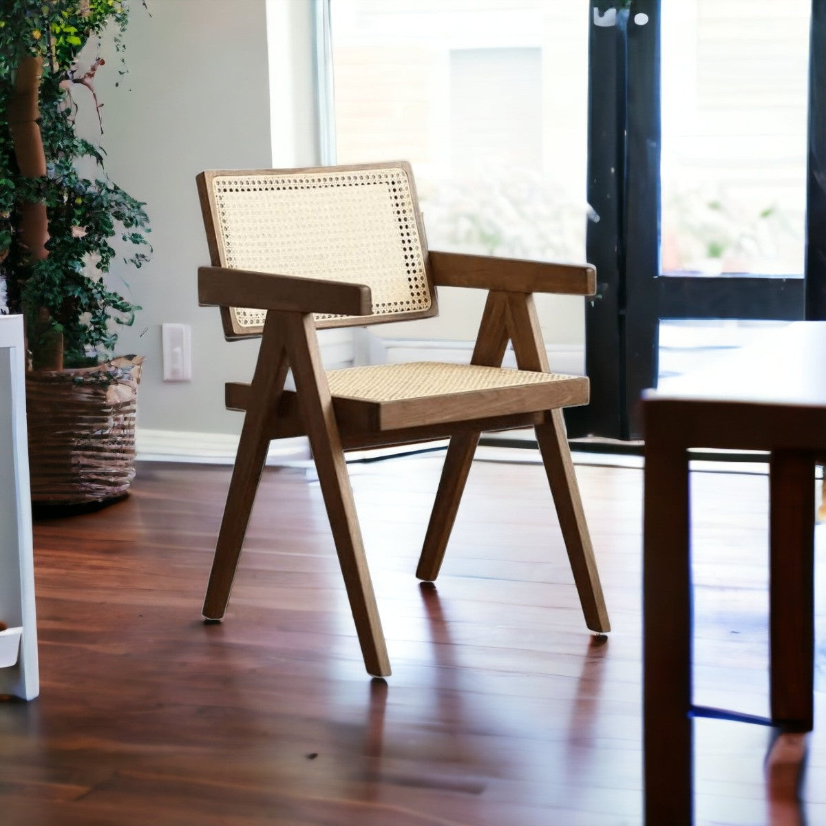 This yellow and brown rattan cross back arm chair is not only good looking, but it also provides long lasting support. The cross back gives this chair its unique style. Dining chairs are a great way to compliment your kitchen or dining room but can also be used in the foyer, hallway, or any room you might need extra seating. 17.7-inch H x 19.7-inch W x 21.7-inch D