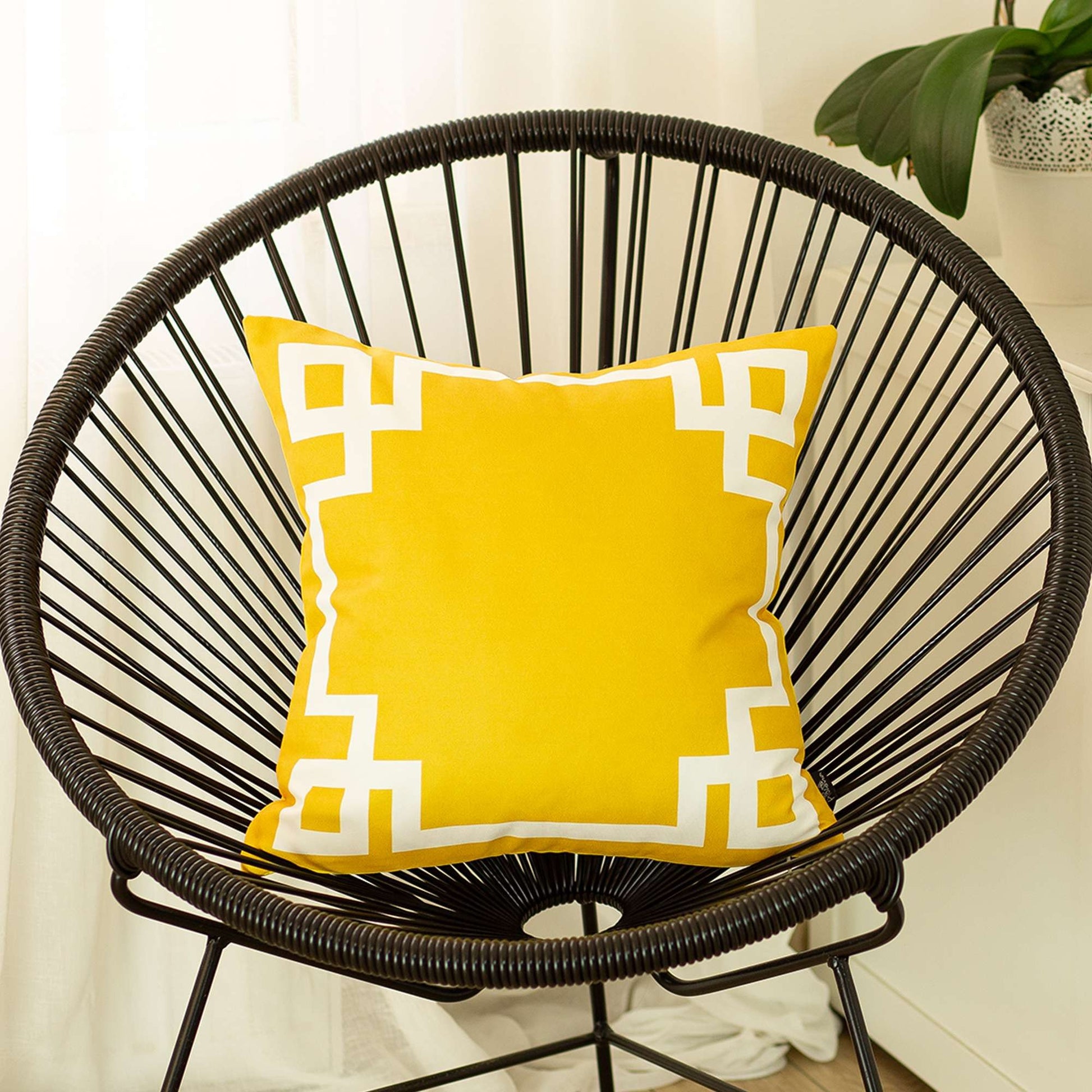 Simple yet playful in its modern pattern and cheerful palette, this Yellow and White Geometric Border Throw Pillow will add pops of color to your living space. Flaunting an eye-catching geometric design in white over a solid yellow ochre base to combine style and sophistication in a compact design. It has high-quality digital printing on both sides, making it simple to place and pair with a variety of decors without worrying about whether there is a right or wrong way to display it. Made in Turkey with OEKO-TEX Standard 100 certified premium polyester fabric for quality, durability, and safety. The pillow has a concealed zipper for a clean look and seamless finish that feels smooth and luxurious to the touch, and the high-quality polyfill insert provides maximum comfort and support to your back when you lean on it. Ideal for any modern or casual home, this decorative throw pillow will be a stunning piece of décor to stand out in your living room. 18” x 18” x 1”