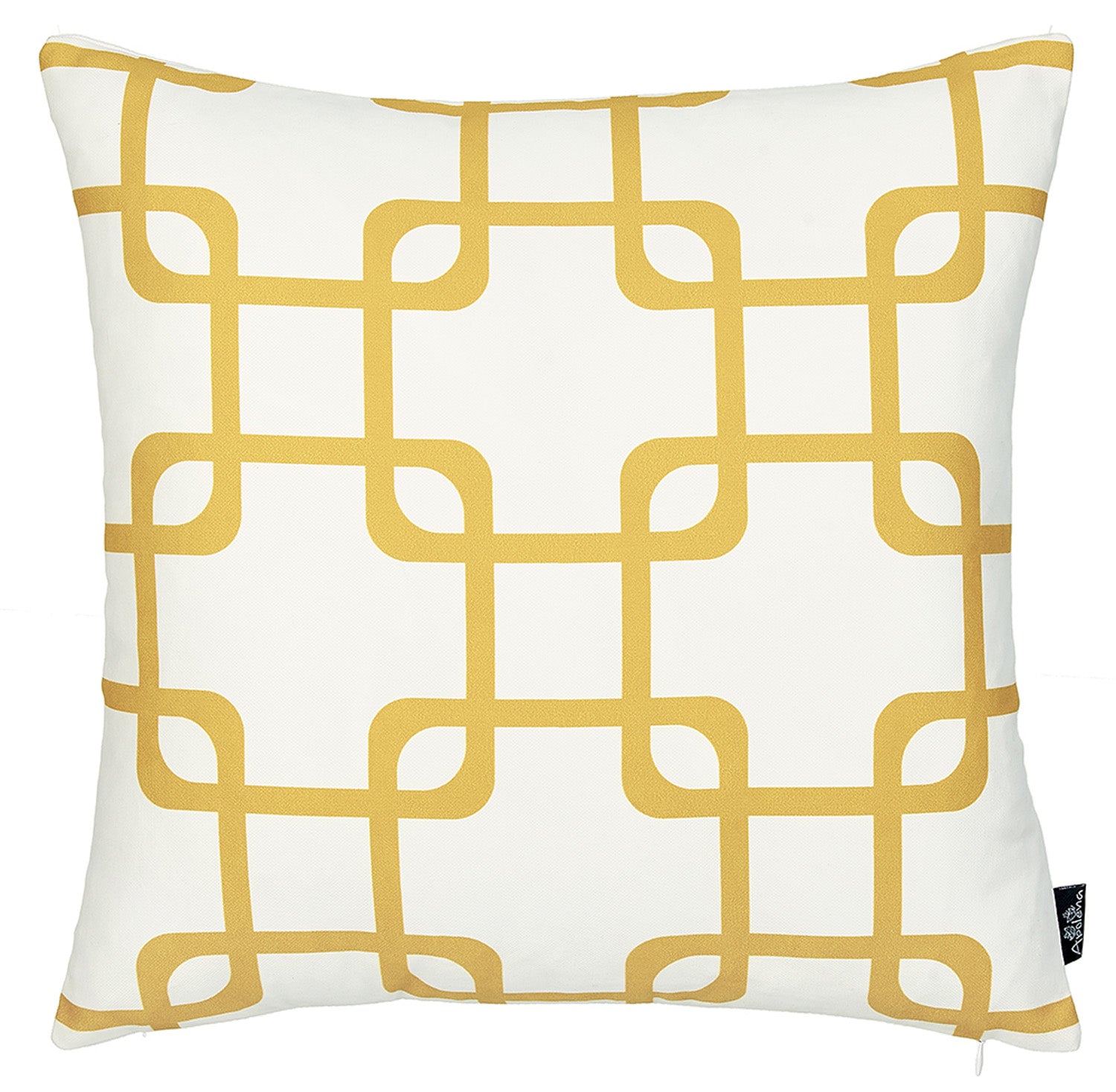 Easily update and refresh your home with this colorful and interesting design. The yellow and white geometric squares decorative throw pillow cover gives an instant upgrade and infusion of color and design to your room. The hidden zipper closure provides a clean and seamless look all the way around. Made of 100% brushed polyester, this warm yellow and white cover feels soft to the hand. 18" X 18" with high-quality digital printing in the front and the backside is solid white color. Inserts are not included. Machine wash cold separately, gently cycle only, no bleach, tumble dry low, do not Iron.